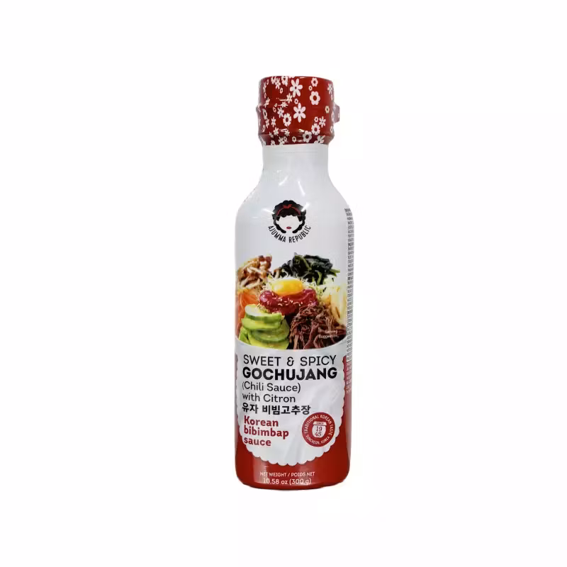 Ingredients: Corn syrup, citron marmalade (15%), rice, water, salt, sugar (5%), garlic, red pepper powder (4.5%), onion, hydrolyzed vegetable protein (corn), ethyl alcohol, plum extract, yeast extract, ginger powder, grapefruit seed extract.