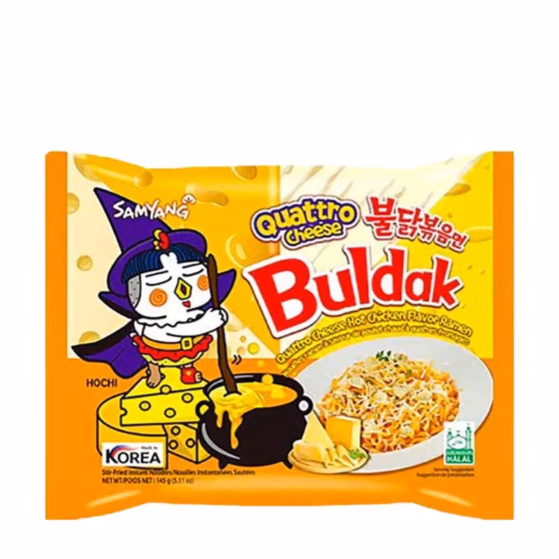 | Innehåll | Snabbnudlar. Ingredienser: Nudlar: VETEMJÖL | modifierad tapiokastärkelse | raffinerad palmolja (VETEGLUTEN) | salt | amulgeringsmedel (E322 (SOJA)) | surhetsreglerande medel (E501i | E500i | E339ii) | förtjockningsmedel (E412) | blandad tocoferolpulver (E306) | grönt te samkolja | riboflavin (E101iii) | surhetsreglerande medel (E330). Soppa: vatten | OSTsås (OST | MJÖLK | vitlök) | vitt socker | smakförstärkare (E621) | SOJASÅS (VETEMJÖL | SOJABÖNolja | artificiell kycklingsmak (SOJA | VETE) | chilipepparpulver (SOJA) | modifierad potatisstärkelse | salt | vitlök | lök | rödpepparpulver (SOJA) | paprikaextrakt | avfärgat chiliextrakt | svartpepparpulver | currypulver (SELLERI | VETE | SOJA). Pulverpåse: MOZARELLA OSTpulver (MJÖLK) | blandad OSTpulver (CHEDDAR | CAMEMBERT | GOUDA) | vitt socker | salt | SOJABÖNolja. Innehåller allergener: SELLERI | VETE | GLUTEN | SOJA | MJÖLK. Tillverkad i en fabrik som också tillverkar produkter med selleri | gluten | kräftdjur | ägg | fisk | mjölk | mollusk | senap | nötter | jordnötter | sesamfrön | sojaprodukter. |